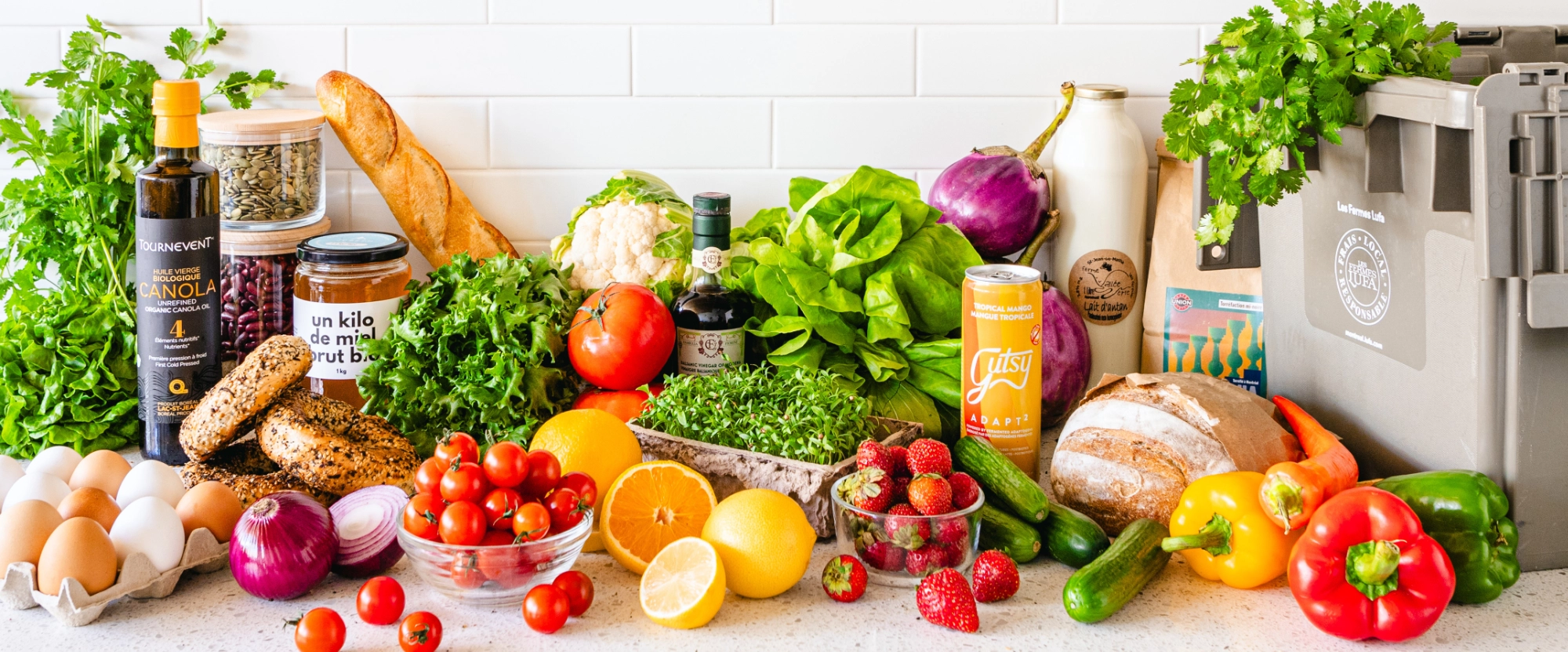 Cette offre s’applique à une vaste sélection de produits : légumes de serre cultivés sur les toits, fruits, viandes, produits laitiers, œufs, pains, repas prêts à manger et articles d’épicerie artisanale.